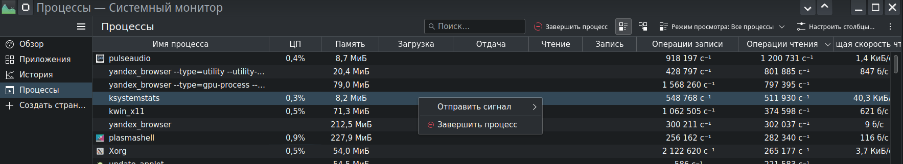 В системном монитре обнаружился некий процесс "ksystemstats": после принудительного завершения которого всё восстанавливается на некоторое время, потом картина повторяется.