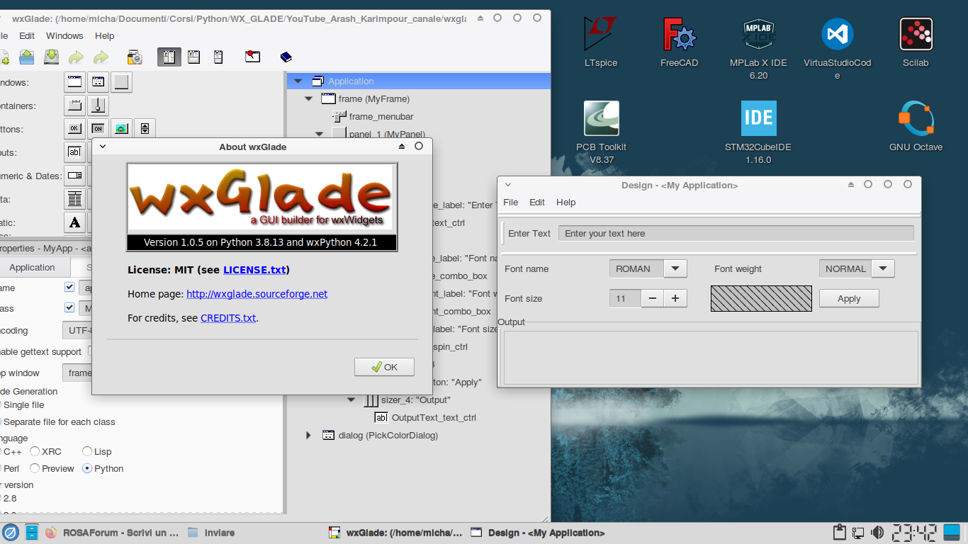 ho aggiornato alla versione 1.0.5. il pacchetto "wxGlade" fermo al 2022 (v. 1.0.2).