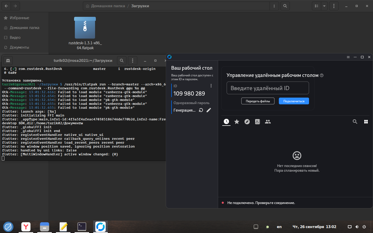 Спасибо за помощь! Оказалось, что сначала надо было обновить систему с 12,4 до 12,5,1, а теперь да, работаетturik02 писал(а): 28 май 2025, 21:22Только что попробовал установить rustdesk на ROSA 12.5.1. Ошибок не было и запускается.