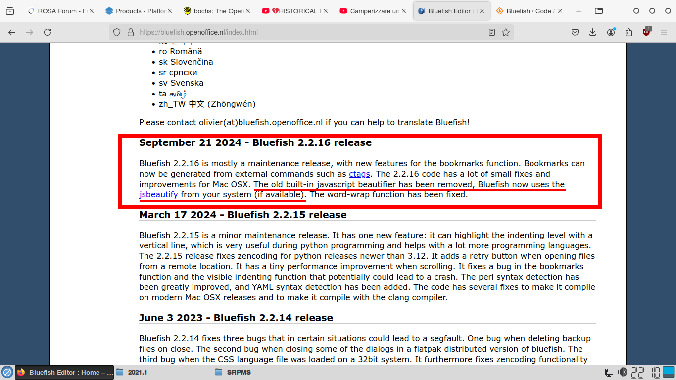 2021.1 Aggiornamento Bluefish 2.2.12 -> 2.2.16