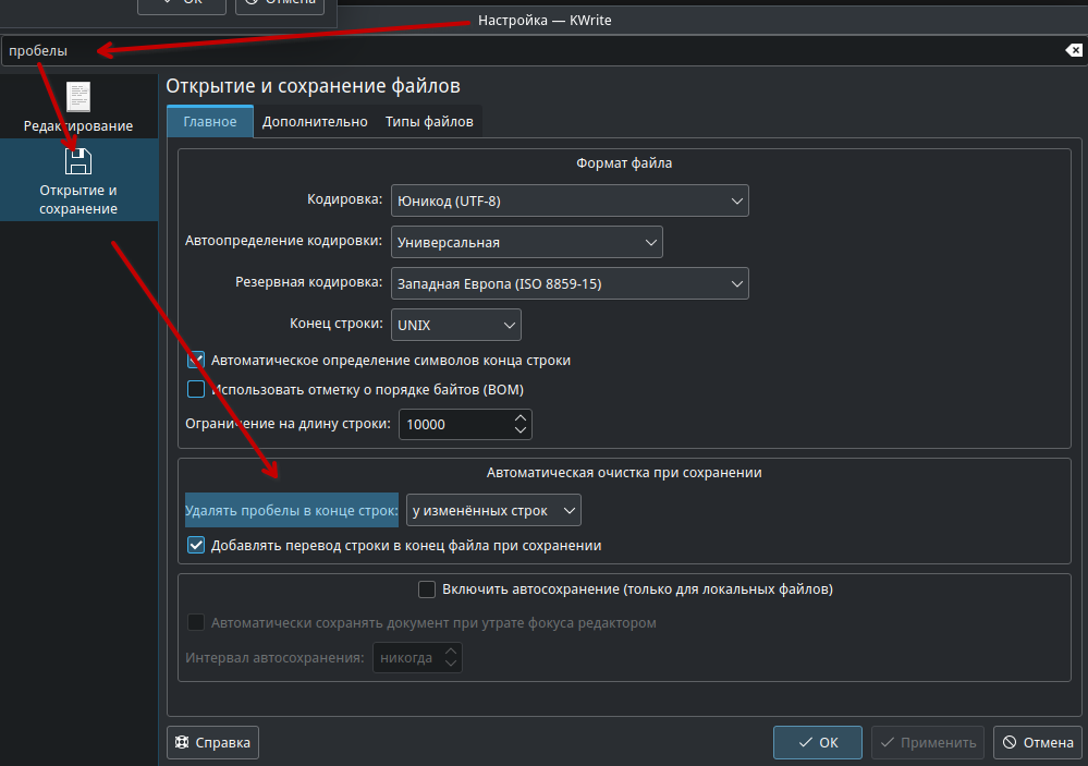 В росе в этом редакторе оказалась включена функция удаления пробелов в конце строки при сохранении файла. Мне это не нужно, как эту функцию отключить?