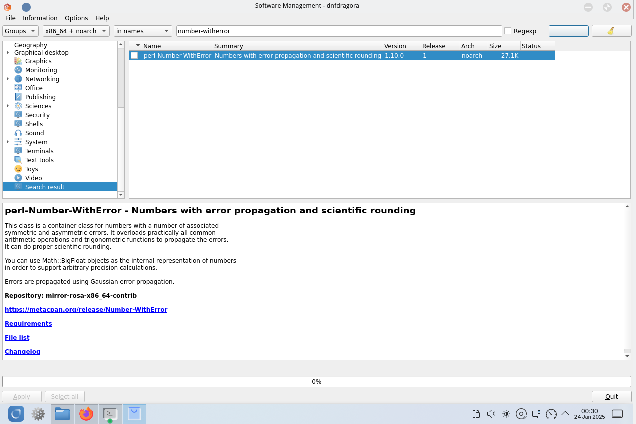 P.S.: I notice an inconsistency in the version of “perl-Number-WithError” package (https://metacpan.org/pod/Number::WithError); the latest version released is 1.01, but i see 1.10.0 (image above) in the package manager. Is there any mistake or "01" is interperted as "010 then "10""?