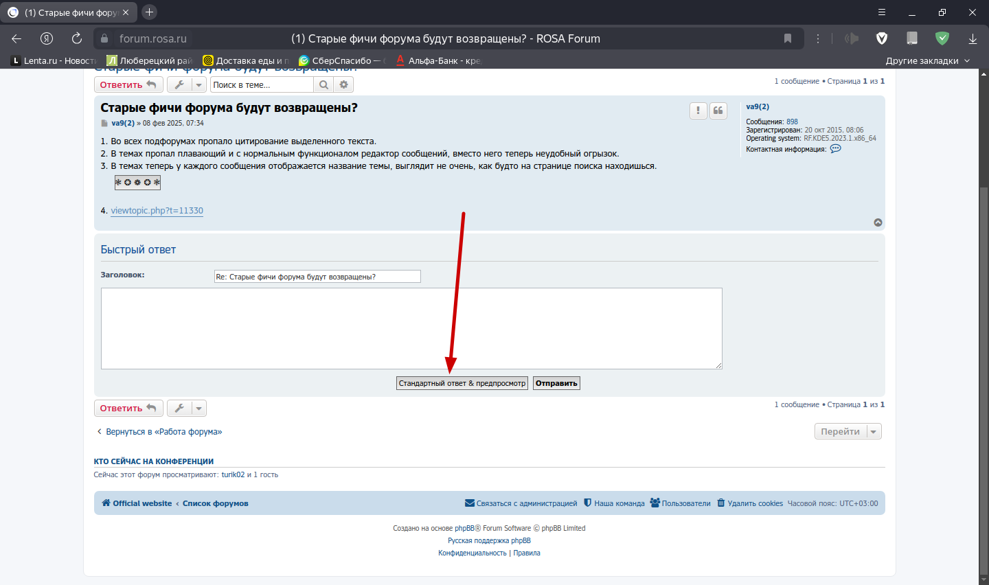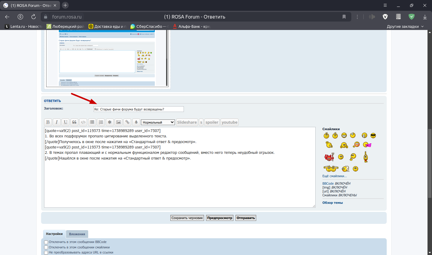 va9(2) писал(а): 08 фев 2025, 07:34 2. В темах пропал плавающий и с нормальным функционалом редактор сообщений, вместо него теперь неудобный огрызок.