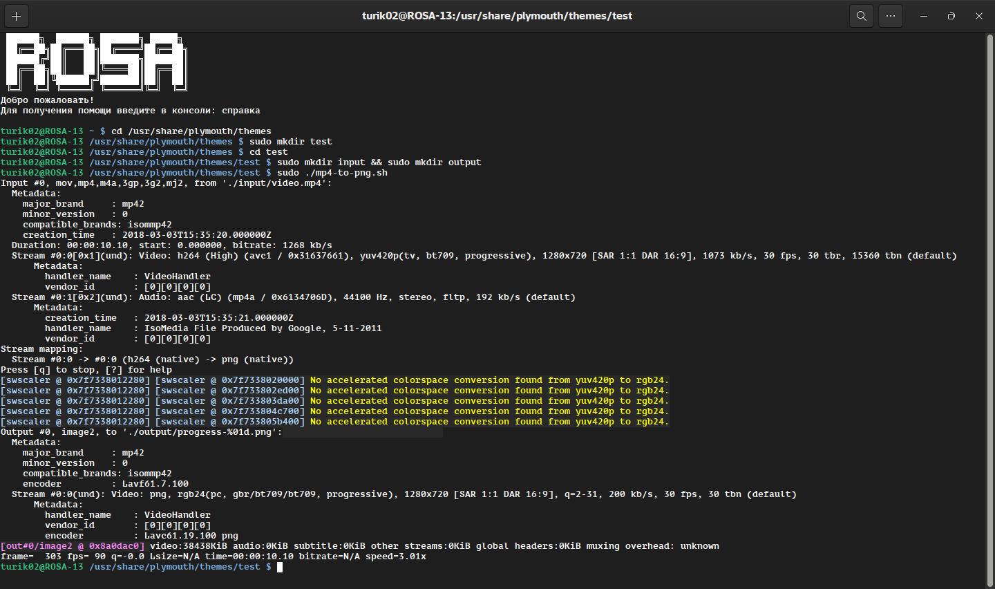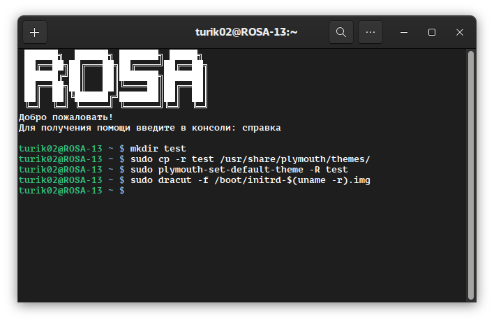 Копируем папку test в /usr/share/plymouth/themes/