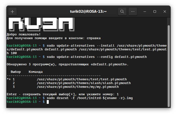sudo plymouth-set-default-theme -R Rosa-fresh-13