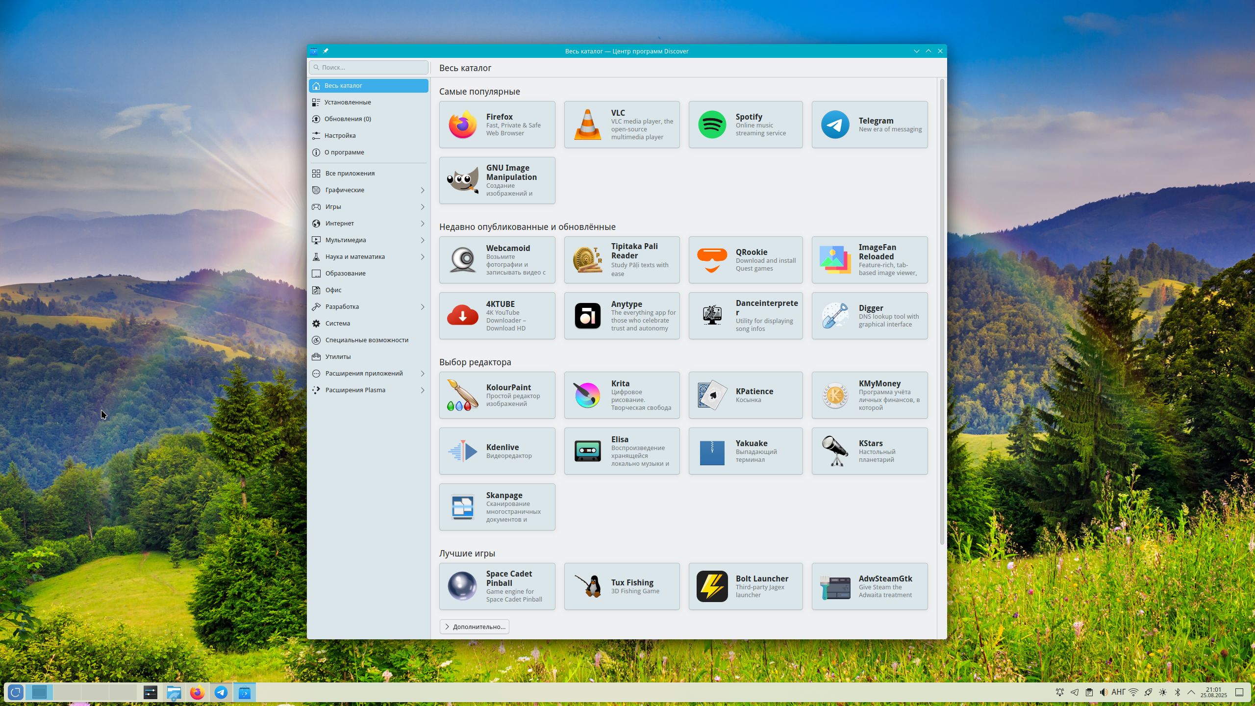sudo dnf in plasma6-discoverПриложения flatpak доступны.