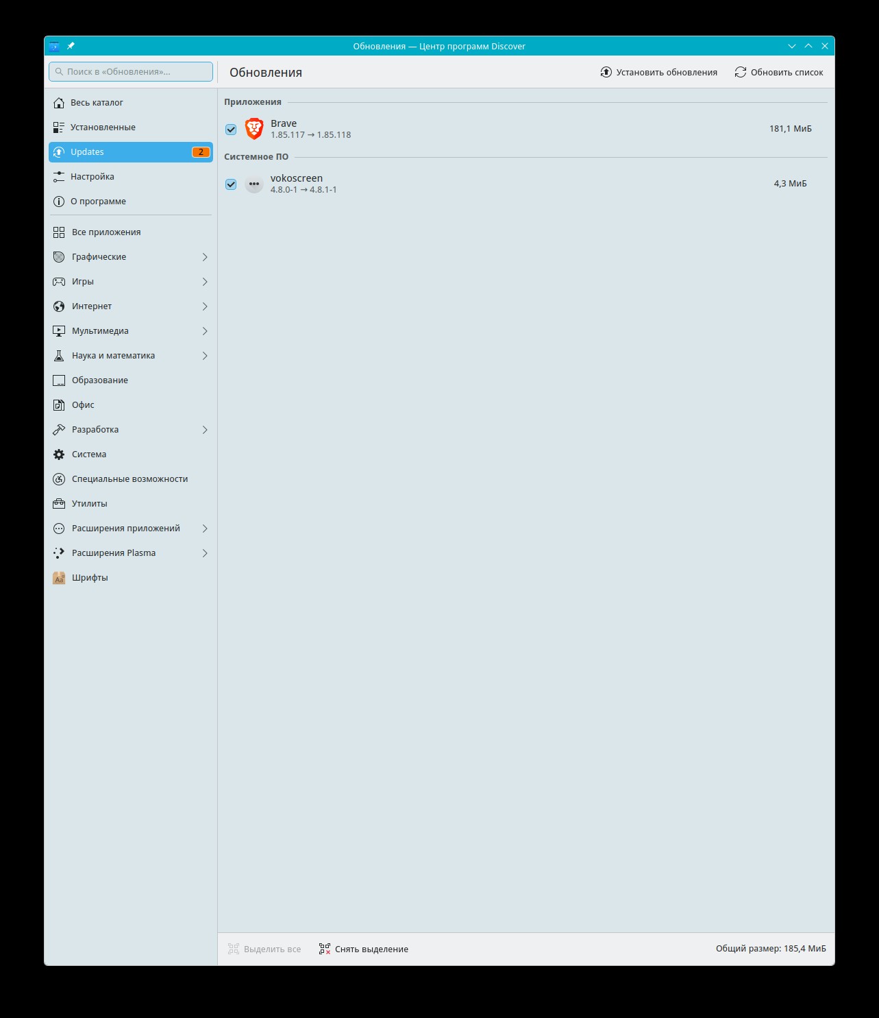 Вот он нашёл обновления.VictorR2007 писал(а): 30 дек 2025, 21:03 Discover всегда видел репозитории, и обновлял и обновляет пакеты из репозитория.