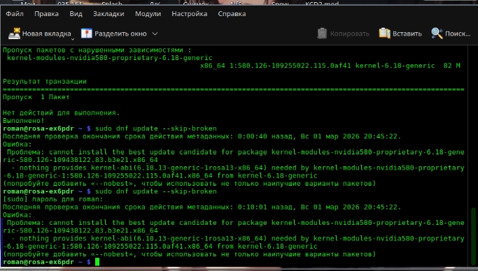 bestcat75 писал(а): 01 мар 2026, 21:05 Всем доброго, после очередного обновления не инициализируется видяха, пишет ошибку обновления, На скрине качество плохое,но разобрать можно, видеокарта 1070 ti ,того модуля в помине не было и установить его невозможно, нет в репах