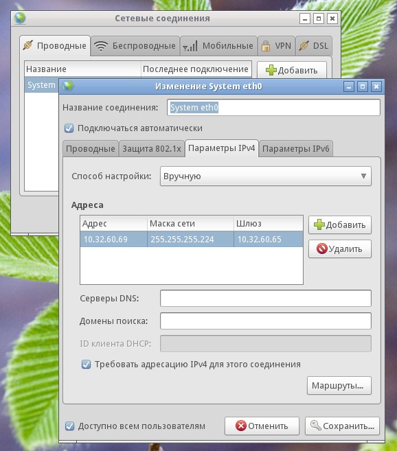 Сеть настраиваю как и в кде-шных версиях. Только в кде-шных все ОК, а в лхде - пропадает настройка ручных параметров для сист. соединения и подключение впн пропадают. До перезагруки все работает.
