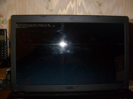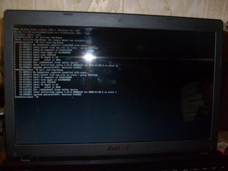 Когда надпись вылезет, попробуйте переключиться по Ctrl+Alt+F2 в консоль, зайти как root и набрать в ней