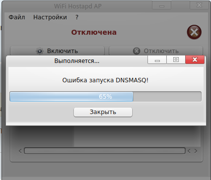 Зависает именно с той программой, логи показать сейчас не смогу, ибо снес эту прогу, настроил через конфиги, dnsmasq работает, видимо сама программа WiFi Hostap AP не цепляет dnsmasq. Я как то не разбирался. Но программа такая была бы очень полезна, много времени сэкономила бы. Хорошо бы в линуксе создать подобную программу из винды как Connectify.PastorDi писал(а):В настройках dnsmasq правильно интерфейсы указали? Что в логах по поводу его запуска пишется?