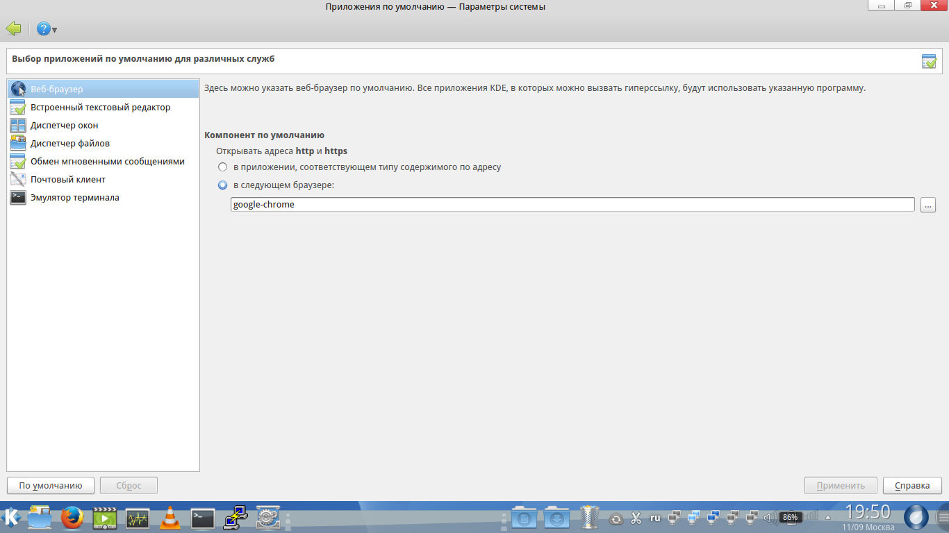firefox установлен по умолчанию в настройках KDE