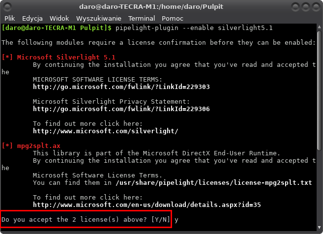urpme pipelightOstatnio zainstalowałem pipelight i okazało się że firefox nie widzi zainstalowanych wtyczek silverlight, aby to naprawić należy wykorzystać następujące polecenie: