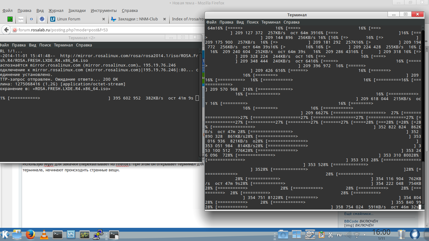 Использую Wget для закачки (перехватывает из firefox). При этом он открывает терминал для показа процесса закачки. Но если, случайно, изменить размер терминала, начинают происходить странные вещи