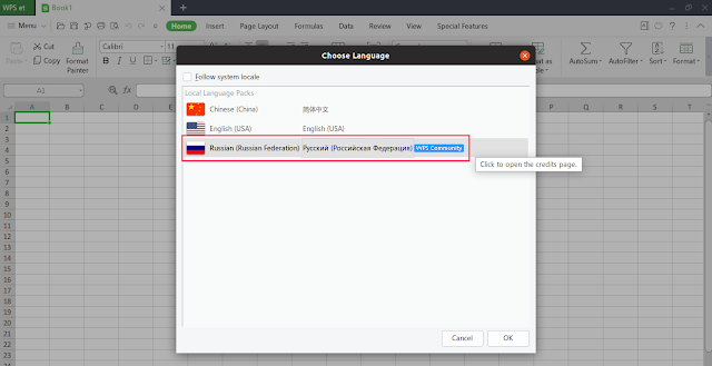Словарь русский скачал с сайта http://wps-community.org/download/dicts/, а язык проверки не переключается, т.е. стоит только английский