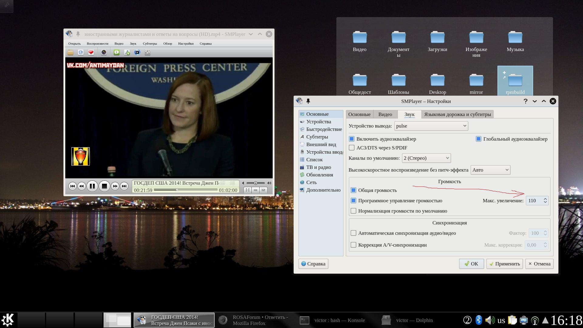 Кстати, в KDE усиление работает, пока не убавишь звук в Kmix.