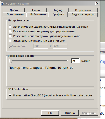 Возвращаясь к теме про нативный 3D в wine, скачал исходники патченного wine в котором появляется пункт включения нативного 3D. В моем случае, имею как раз таки карты ati.