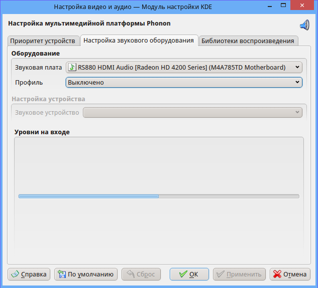 В терминале: pavucontrol, Конфигурация, профиль: выключено.