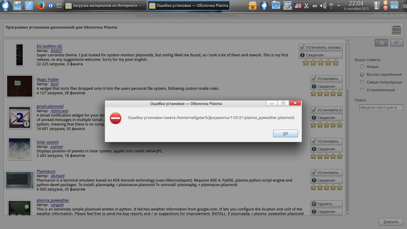 не становятся вот эти вот виджеты (EG-SysMon-QC) (plasma_pyweather 1.7) (AppMenu QML 1.6)(Sensors-Monitor 0.1) другие тоже не ставятся