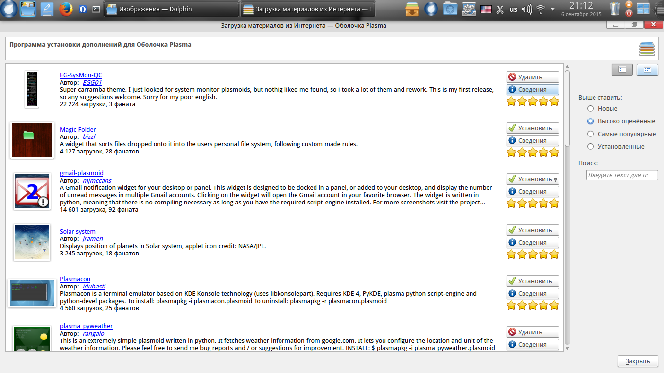 Та проблема в том что там нет ни описания ни картинки. Тоже придется методом научного тыка пробовать.keleg писал(а):Ставьте из репозиториев по поиску plasma-applet-