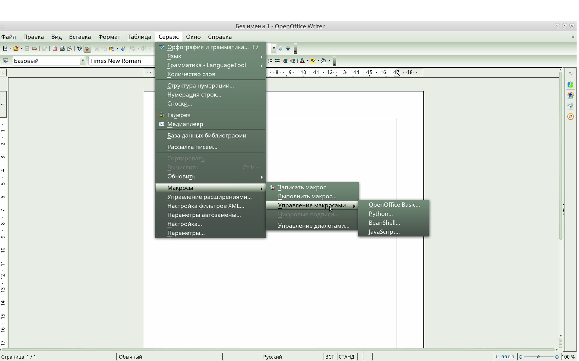 $И еще, в пункте меню LO "Сервис" нет подпункта "Создать макрос", о котором говорится в мануалах по LO. Это тоже для меня самого уже обойденная проблема.