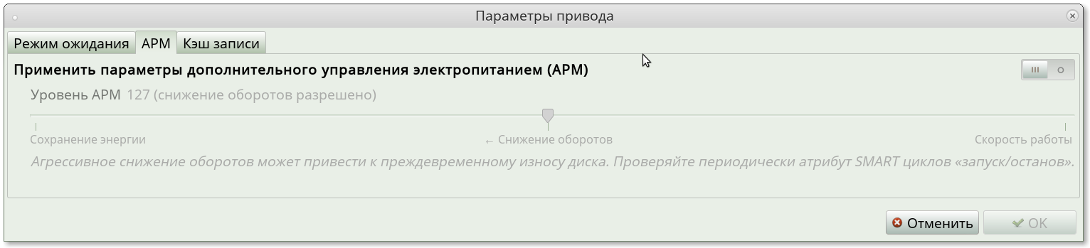 sudo hdparm -W /dev/ваш_диск покажет состояние write-caching