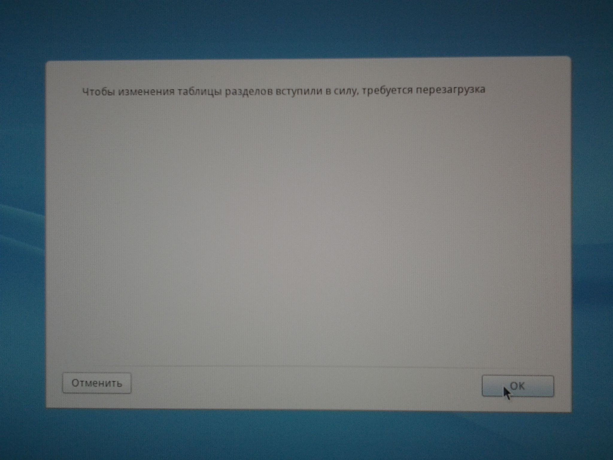 Я выбираю «Очистить и использовать весь диск», после чего получаю извещение, что требуется перезагрузка: