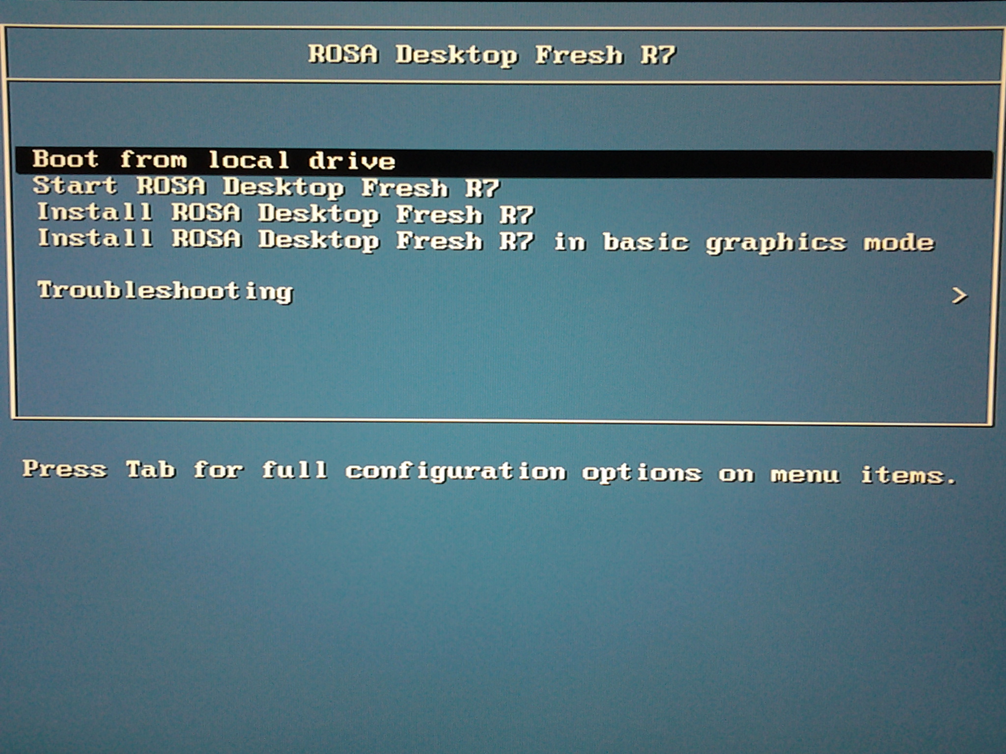 Пытаюсь установить Росу на Dell Inspiron 5459-6410. Установочный образ использую ROSA.FRESH.KDE.R7.14366.kernel4.4.x86_64.uefi.iso, т.к. он правильно определяет разрешение экрана (другие с R7 неправильно) и вообще он прекрасно работает в лайв-режиме. В BIOS’e поставил Legacy и пр. —