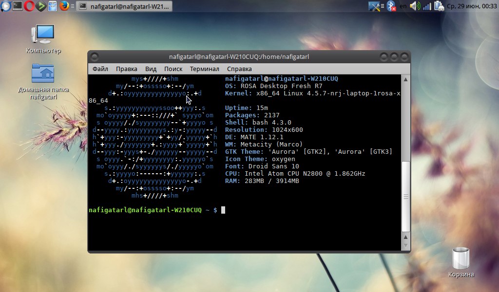 Добрый день. Узнал, что в Росе появилось DE Mate. Пробовал рядом с KDE ставить, слишком много лишнего получается, не понравилось. На VK нашел ссылку на ROSA.FRESH.MATE.R7.14963.b.x86_64.uefi.iso. Поставил на ноут второй системой. Настроил под себя, сменил ядро на 4.1.22-nrj-laptop-2rosa-x86_64. Первое впечатление неплохое.