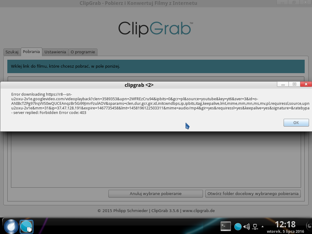 Witam, gdy dzisiaj chciałem pobrać jeden kawałek za pomocą Clipgrab moim oczom ukazał się komunikat; Czy mógłby ktoś z Was wyjaśnić mi o co w tym chodzi.