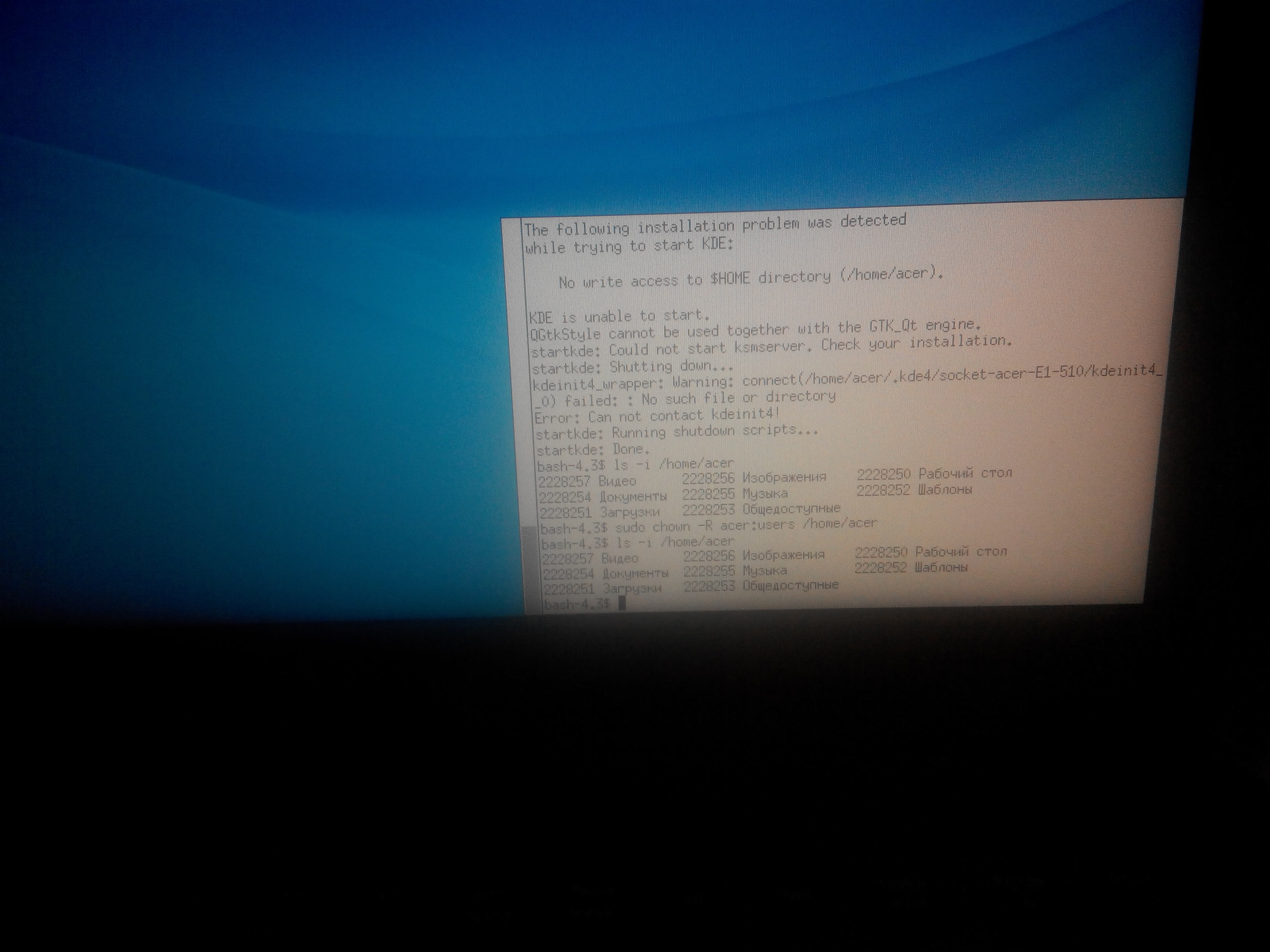 kde4-firstsetup.sh: строка 167: /home/acer/.gtkrc-2.0-kde4: отказано в доступе