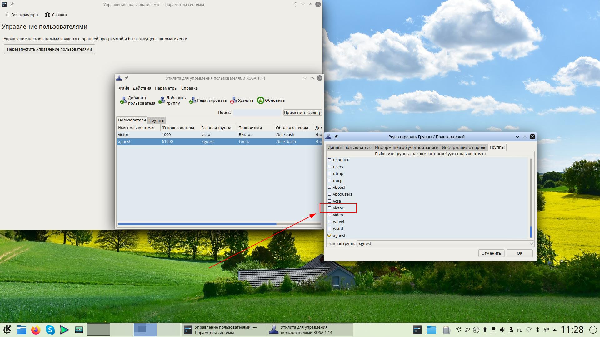 Или в файле /etc/group