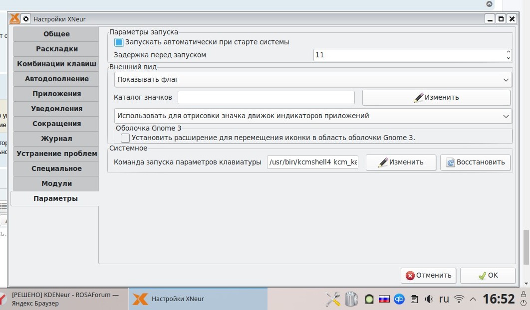 Перезагружаюсь - KDENeur стартует (значок в трее доступен), однако