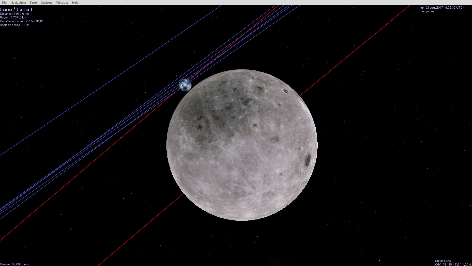 C'est vrai que le soleil est aligné avec la lune et la terre si on en croit le logiciel Celestia!
