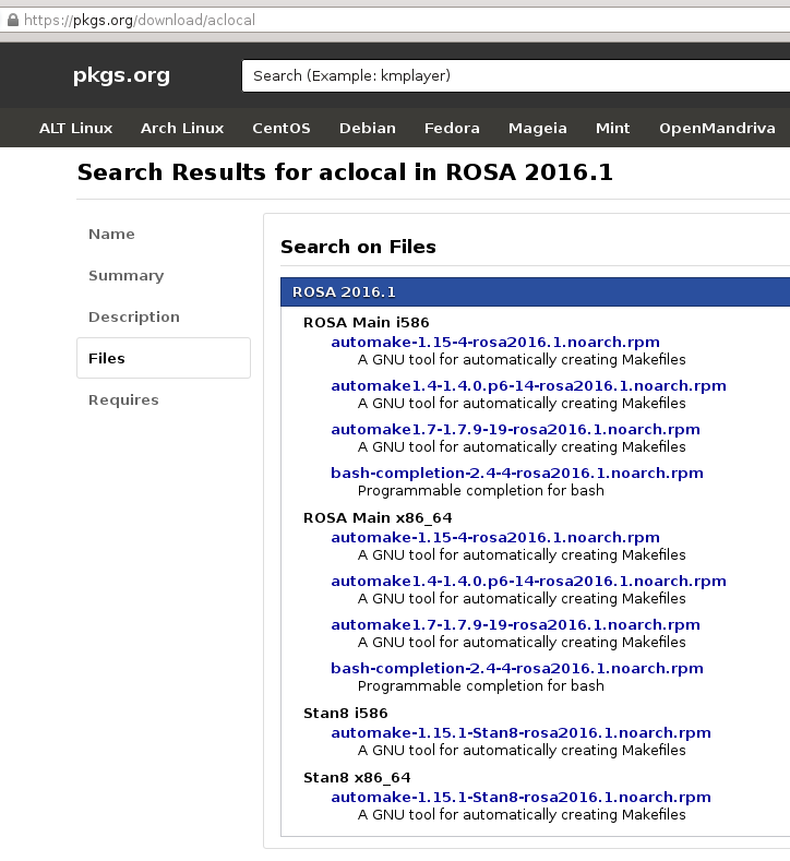 в поиске вписать aclocal, указать дистрибутив, затем в результатах поиска выбрать Files