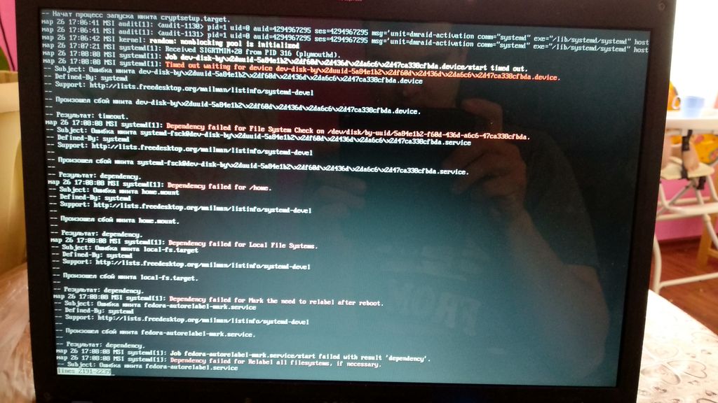 Случилась у меня такая напасть. Три года всё летало, но похоже настало переполнение раздела /home. Жена качнула торрентом сериалов и на следующий запуск я увидел это: