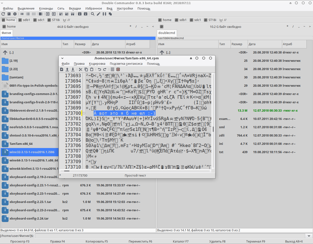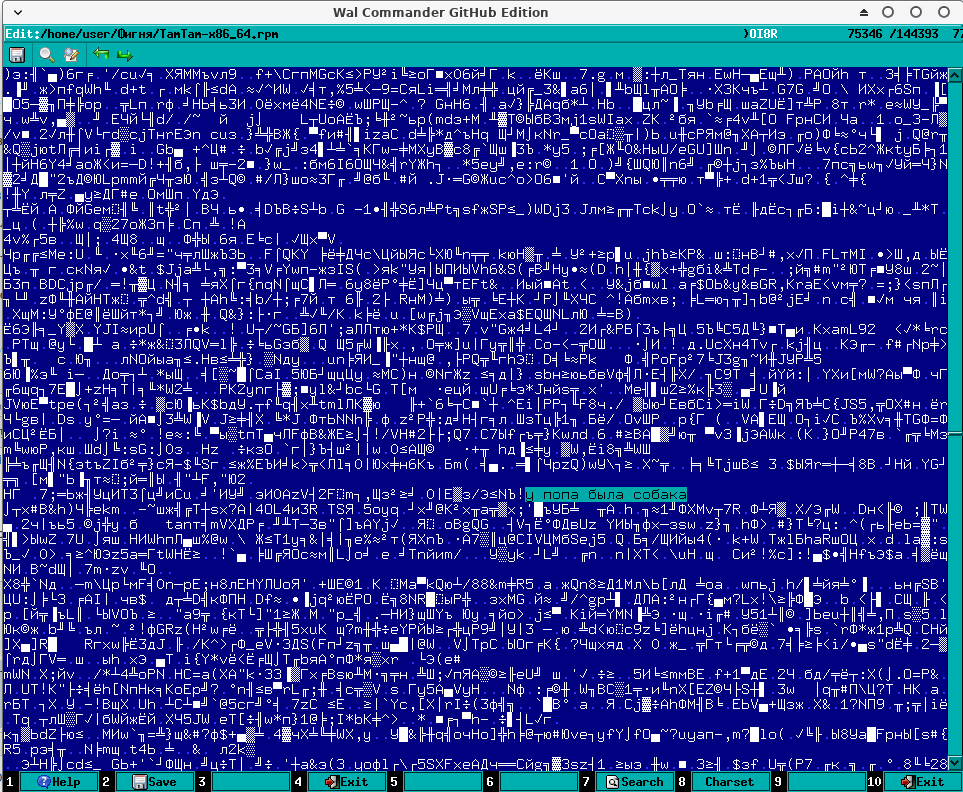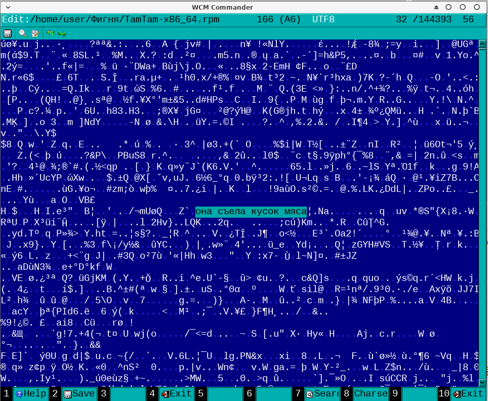 И напоследок я попытался открыть этот файл в Far Manager. К сожалению он отвалился уже на команде cd /home/user, где лежал каталог с этим файлом. Так что не судьба, думаю. Far для линукса почти бесполезен.
