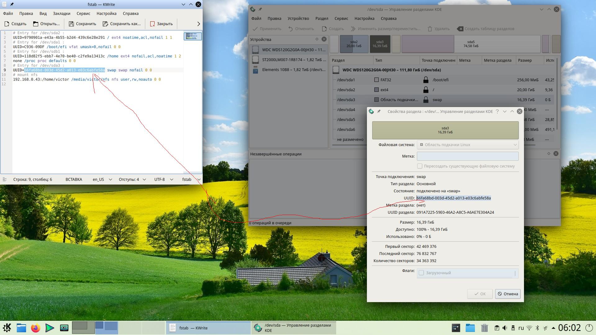 Когда приводите записи в fstab в соответствие с реальностью,