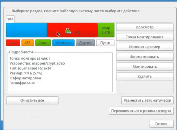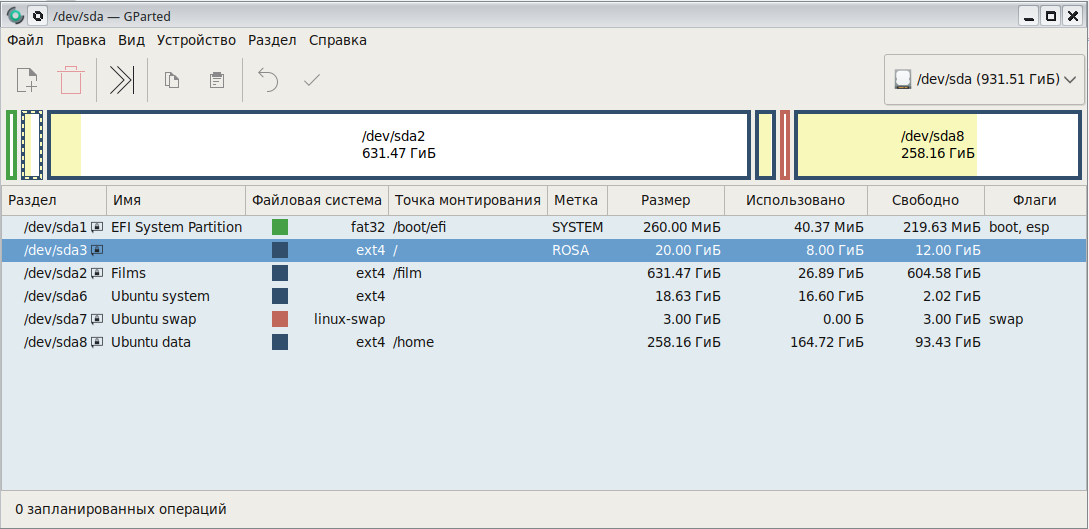Для Росы сделаю отдельный / (корневой раздел) и отдельный раздел под swap.